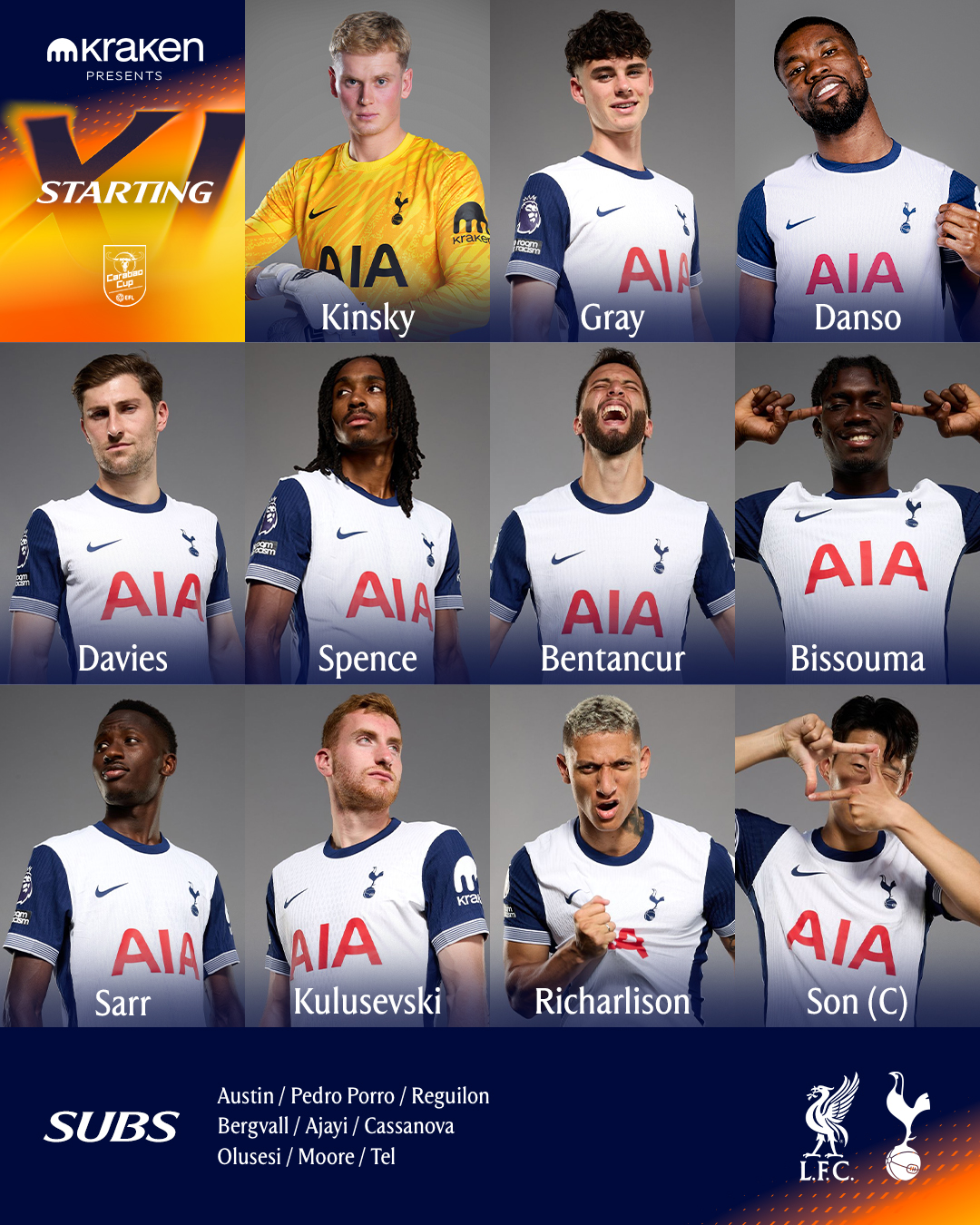Tottenham: Kontuzjowani są Dragusin, Johnson, Maddison, Odobert, Romero, Solanke, Udogie, Vicario oraz Werner. Z kolei van de Ven nie jest jeszcze w pełni sił po ostatnim urazie i sztab nie chce ryzykować jego występem.